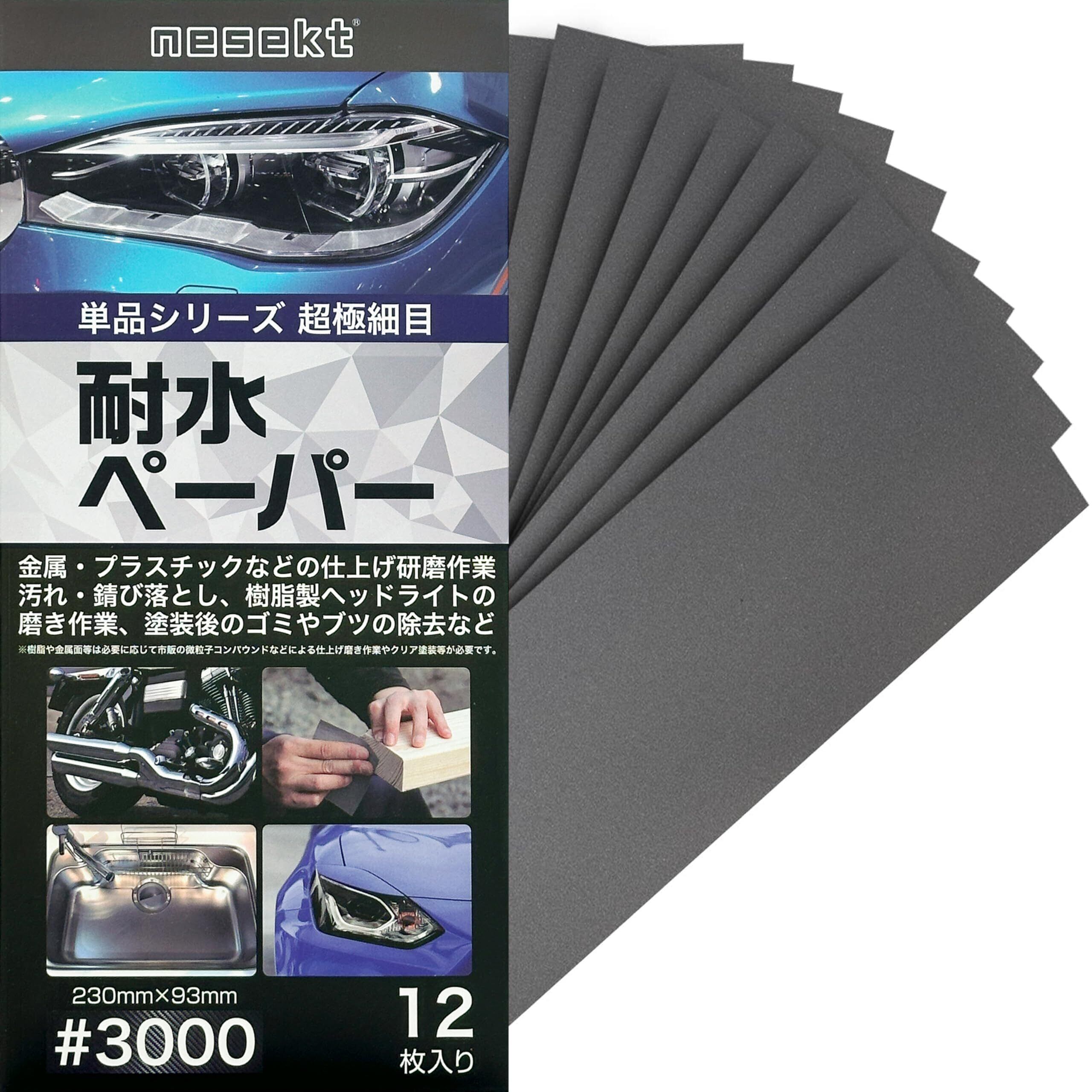[ネセクト] 耐水ペーパーセット 12枚 #3000 サンドペーパー 耐水紙やすり 極細目 金属 木工 補修[日本企画3年]