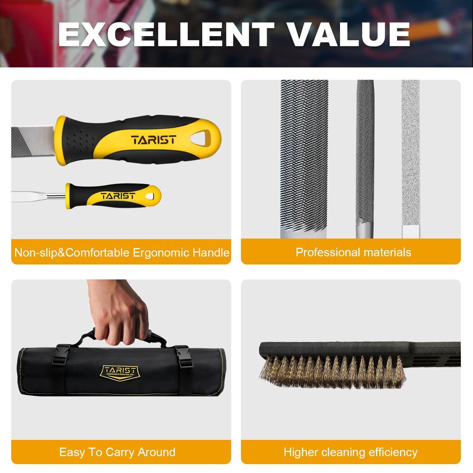 【高品質素材】- ヤスリはプレミアム素材のT12炭素鋼でできており、本体の硬度は最大62~66HRCです。歯は深く焼入れおよびコーティングされ、耐久性のあるファイリング性能を実現しました。