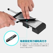 【包丁研ぎ補助具付き】:この研ぎ石は、角度固定用刀補助具付きです。誤った角度で研ぐと、包丁の寿命を著しく落としてしまいます。角度固定ホルダーは、包丁に15度ぐらいの角度をつけて、プロはもちろん初心者の方にも簡単に使いこなせるように役に立ちます。