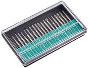 セット内容:円筒先半丸×2種(φ1.5、φ1.8)、円錐先平×3種(φ1.1×φ1.6、φ1.3×φ1.9、φ1.6×φ2.3)、円筒×6種(φ1.0、φ1.6、φ1.8、φ2.6、φ2.6、φ3.2)、球×3種(φ2.0、φ2.5、φ4.0)、円錐×3種(φ2.0×12.0、φ2.5×12.0、φ4.2×6.0)、異形×3種(φ3.0×4.5、φ2.5×3.5、φ2.2×8.0)
