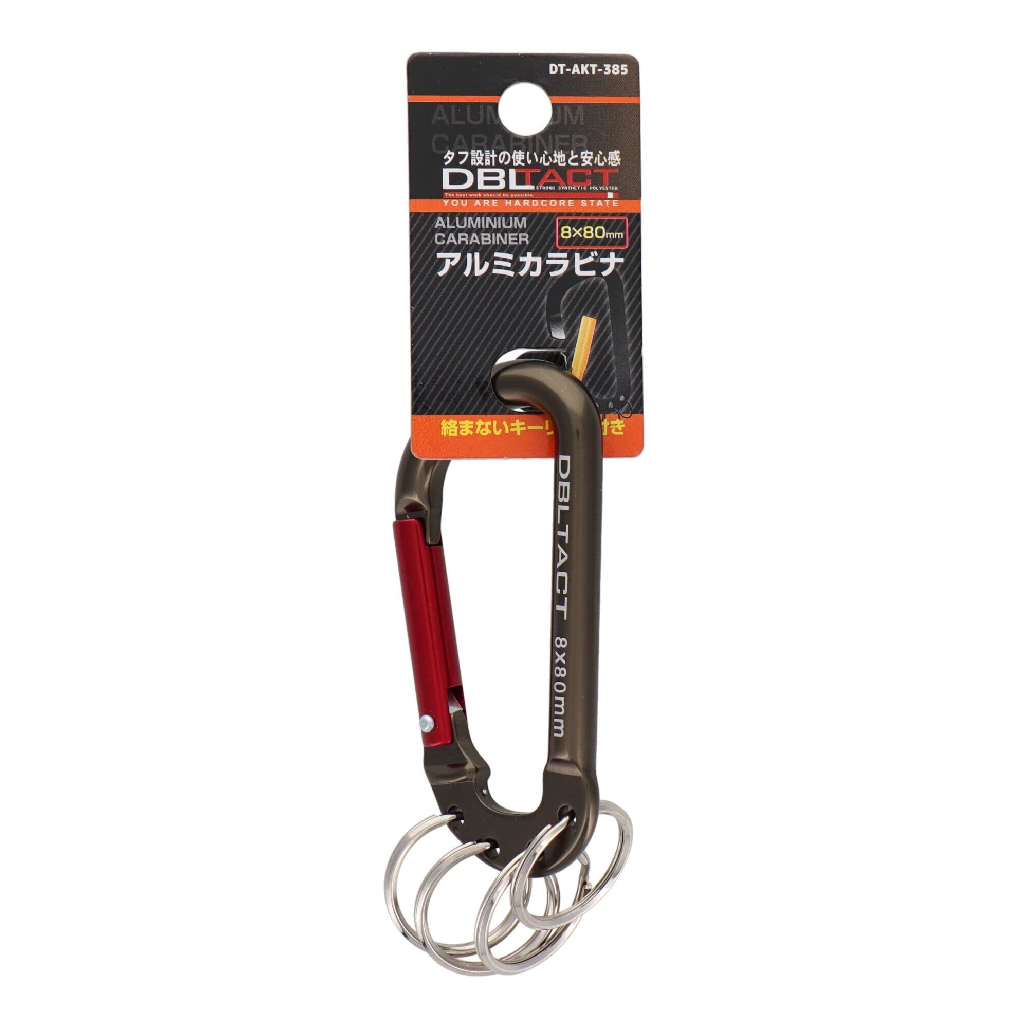 三共コーポレーション DBLTACT アルミカラビナ キーリング付 4連 ガンメタ(S)×レッド DT-AKT-385