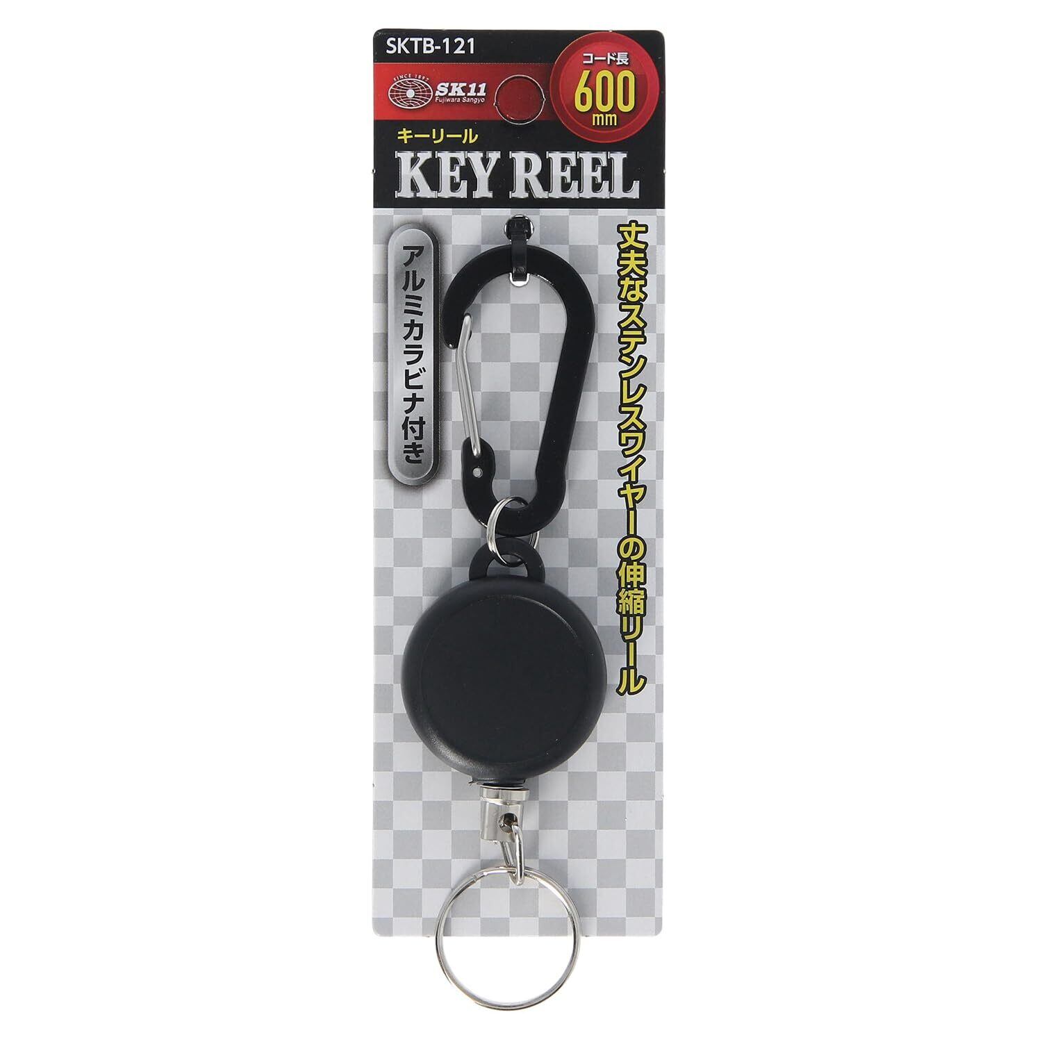 SK11(エスケー11) キーリール ステンレスワイヤー アルミカラビナ付き コード長600mm SKTB-121