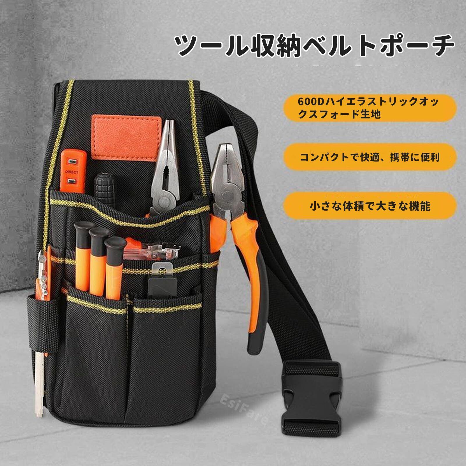 EsiFare 腰袋 釘袋 着脱式 ウエストバッグ ベルト付き 調節可能 大容量 多機能ポケット 工具入れ ツール収納バッグ 工具差し 小物入れ 道具袋 作業用 ガーデニング用 ベルトポーチ DIY・釣り用 電工 大工用
