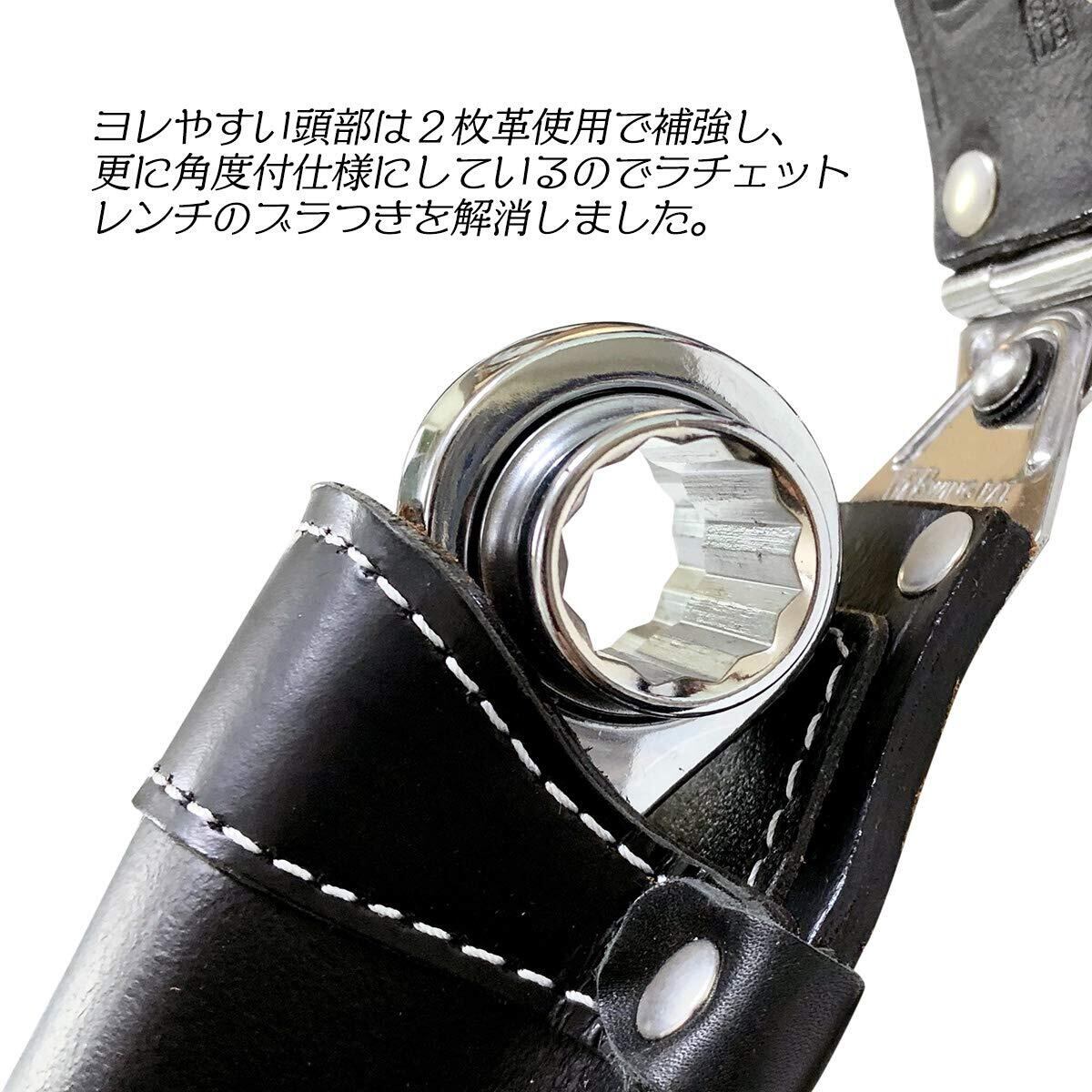 ●縫製は太目の糸で二重仕上げ、リベット部も耳革を追加装備しているのでダメージの多い箇所の補強もバッチリです。●ツールがしっかり収納できるサイズで設計・製造され、太陽光による変色や老化を防ぐ黒革素材を採用しています。●各種ラチェットレンチの収納に最適なダブルスイング式黒革工具差しです。●縫製は太目の糸で二重仕上げ、リベット部も耳革を追加装備しているのでダメージの多い箇所の補強もバッチリです。●摩擦を防ぐため取出し口をPE材で補強し、丈夫かつツールに馴染みやすい仕様にしています。●各メーカーのワンタッチベルトがスムーズに通せる他、安全ロープ等の取り付けが楽にできる大型のアイレットスペースを装備しています。●前面部を二重に補強することにより従来品の劣化寿命を解消した他、収納差込口に角度をつけることにより、常にブラつかず腰にフィットするよう設計されています。