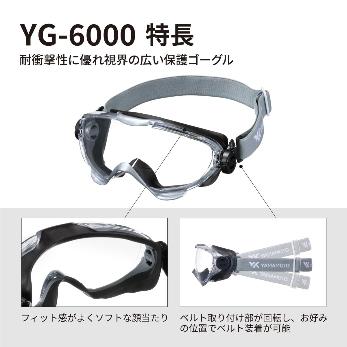 [山本光学] 保護ゴーグルYG-6000 (バックルなし) キズに強い くもり止め 日本製 JIS 紫外線カット