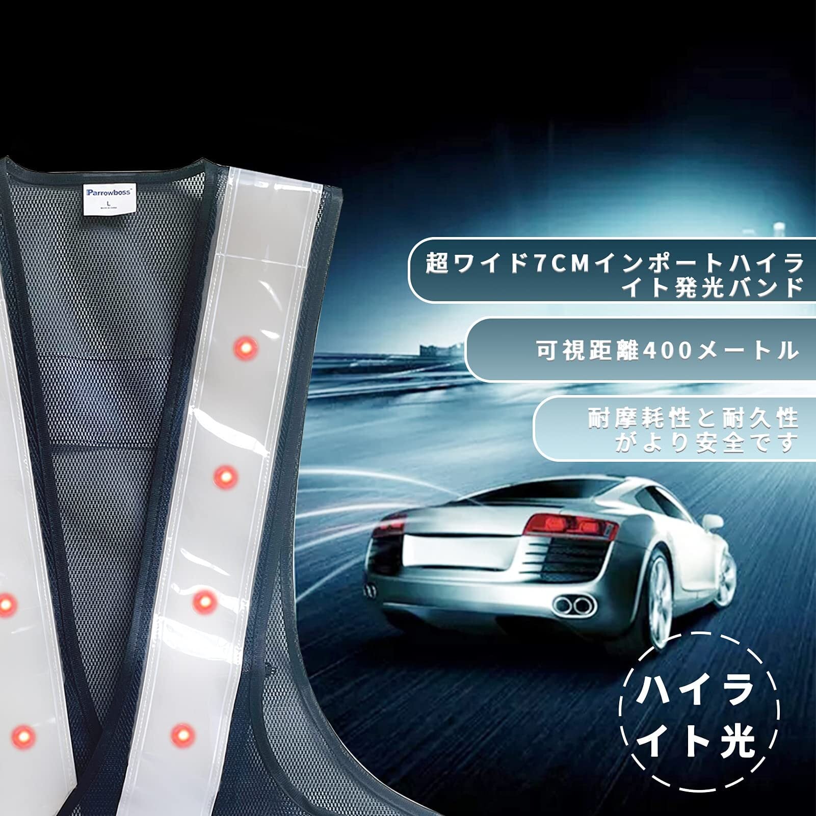 [Parrowboss] LED安全反射ベスト、16個の赤色LEDライトメッシュ発光警告ベスト、事故防止、夜間工事指導、交通、サイクリング、ランニングに適しています