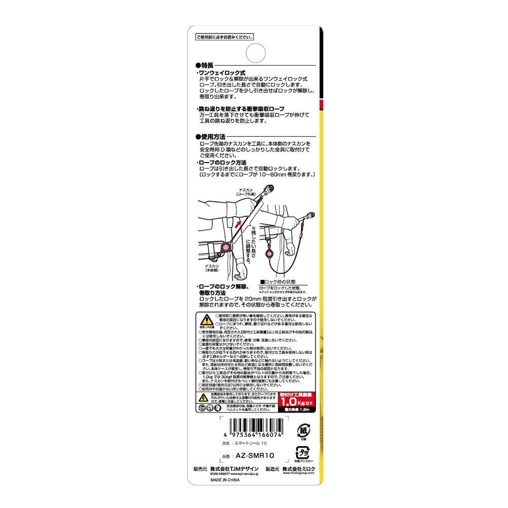 タジマ(Tajima) スマートリール 10 取付工具重量1kg用 AZ-SMR10 [安全帯 落下防止 電気工事 高所での安全作業]