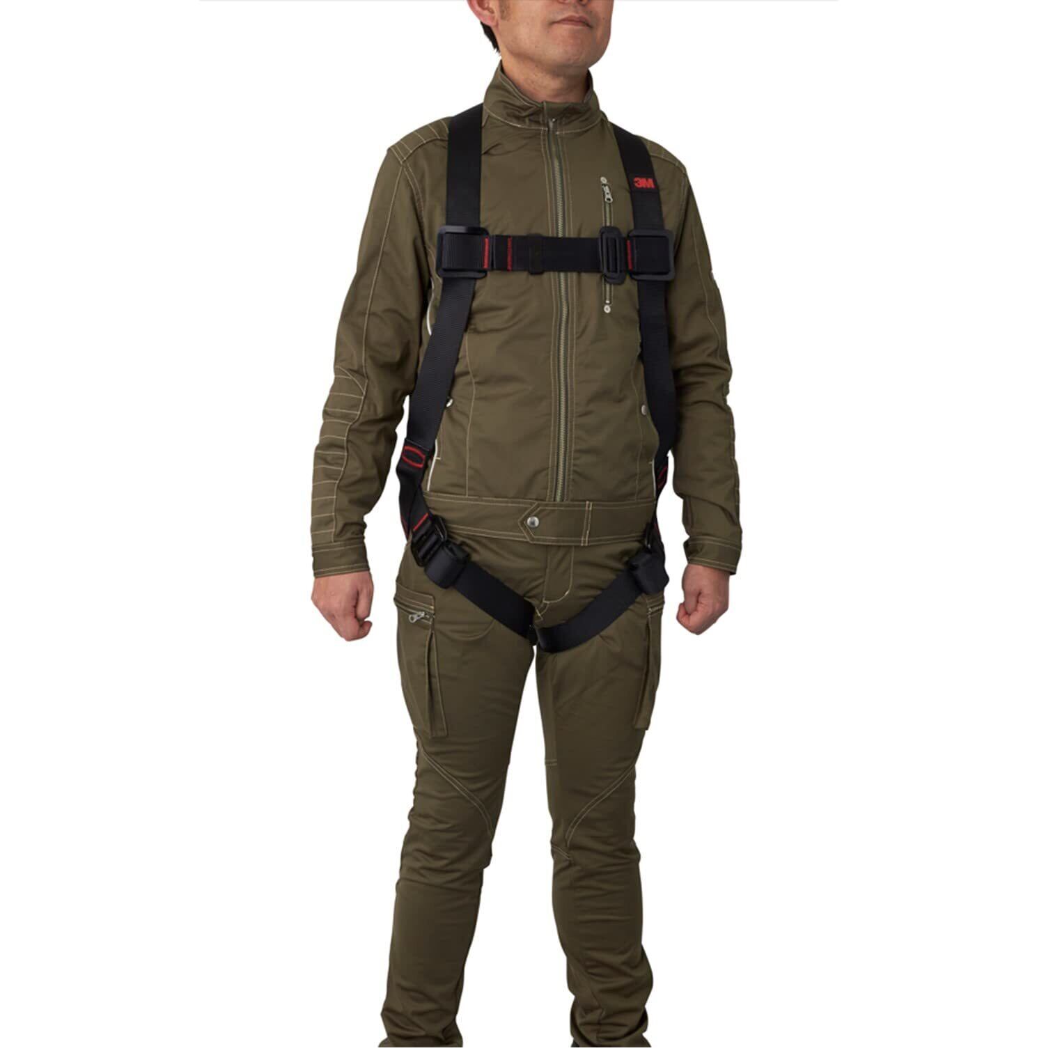 フルハーネスのX型の背中部ベルト構造は、しゃがんだ際の突っ張りを抑え、万一の落下差の際にも衝撃を左右に分散させ、墜落制止後も安定した姿勢を保ちます