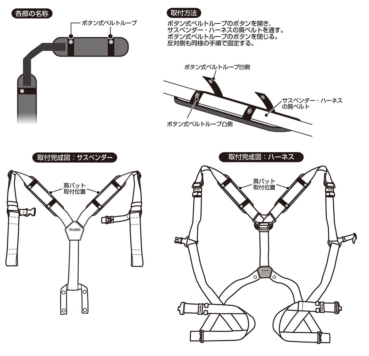TJMデザイン(TJM Design)タジマ 安全帯 肩パットUS 特殊ステッチで肩にフィット すれ防止と痛みを軽減 フリーサイズ KPUS-F