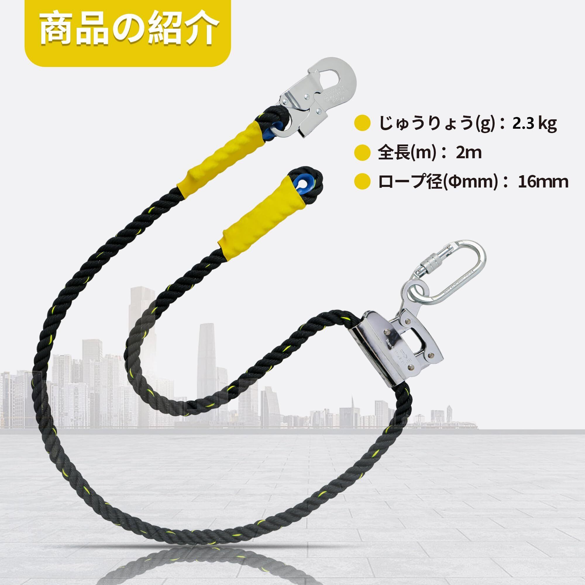 ランヤード寸長さ(mm):2000mm 二重安全装置・よりもどし機構付、回転フック