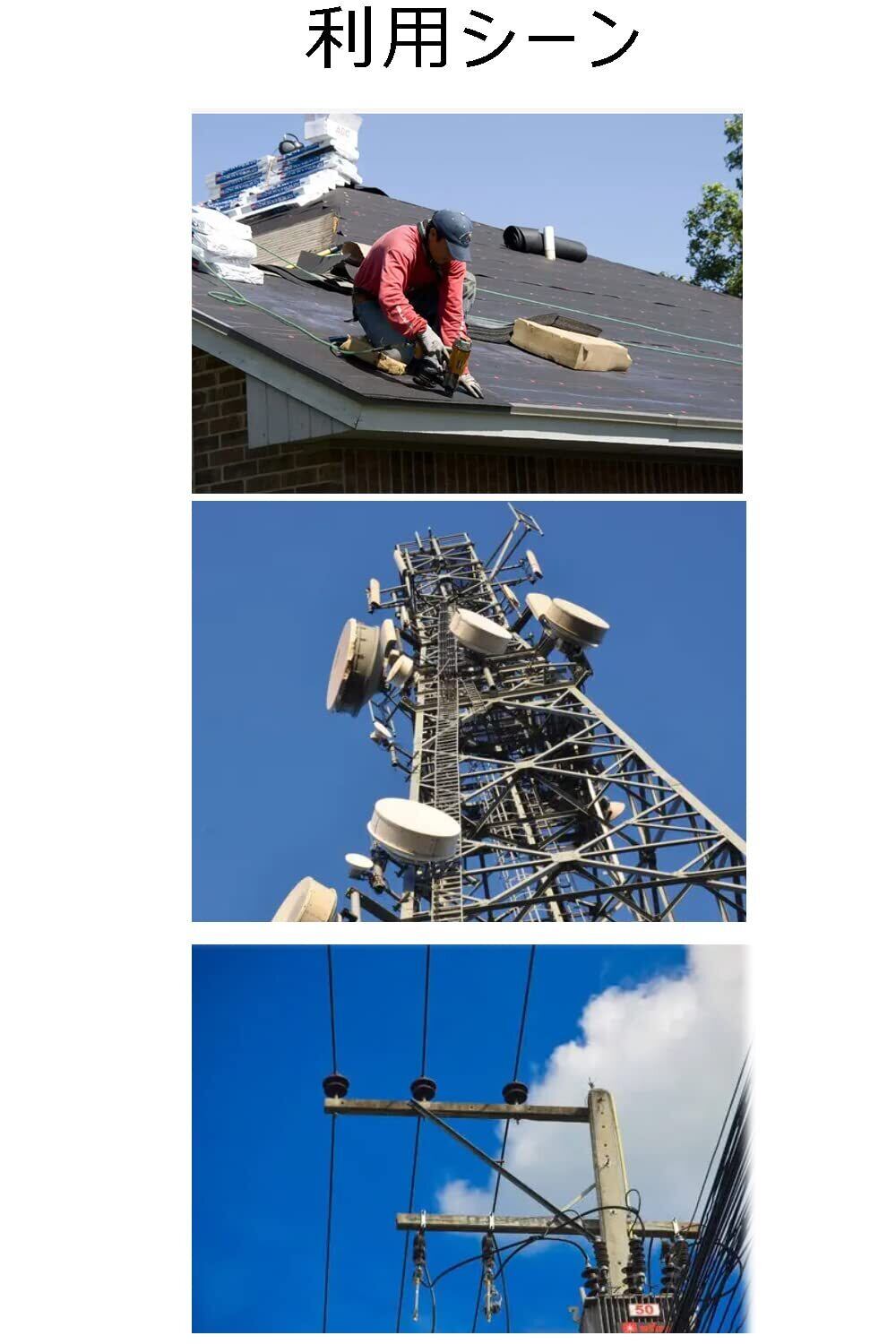 [新規格適合] Ulmior 柱上作業用安全帯用 セフティロープ 一般高所作業用 補助ロープ 副ランヤード 両端フックロープ 墜落制止用器具 取替え用 取り付き説明書