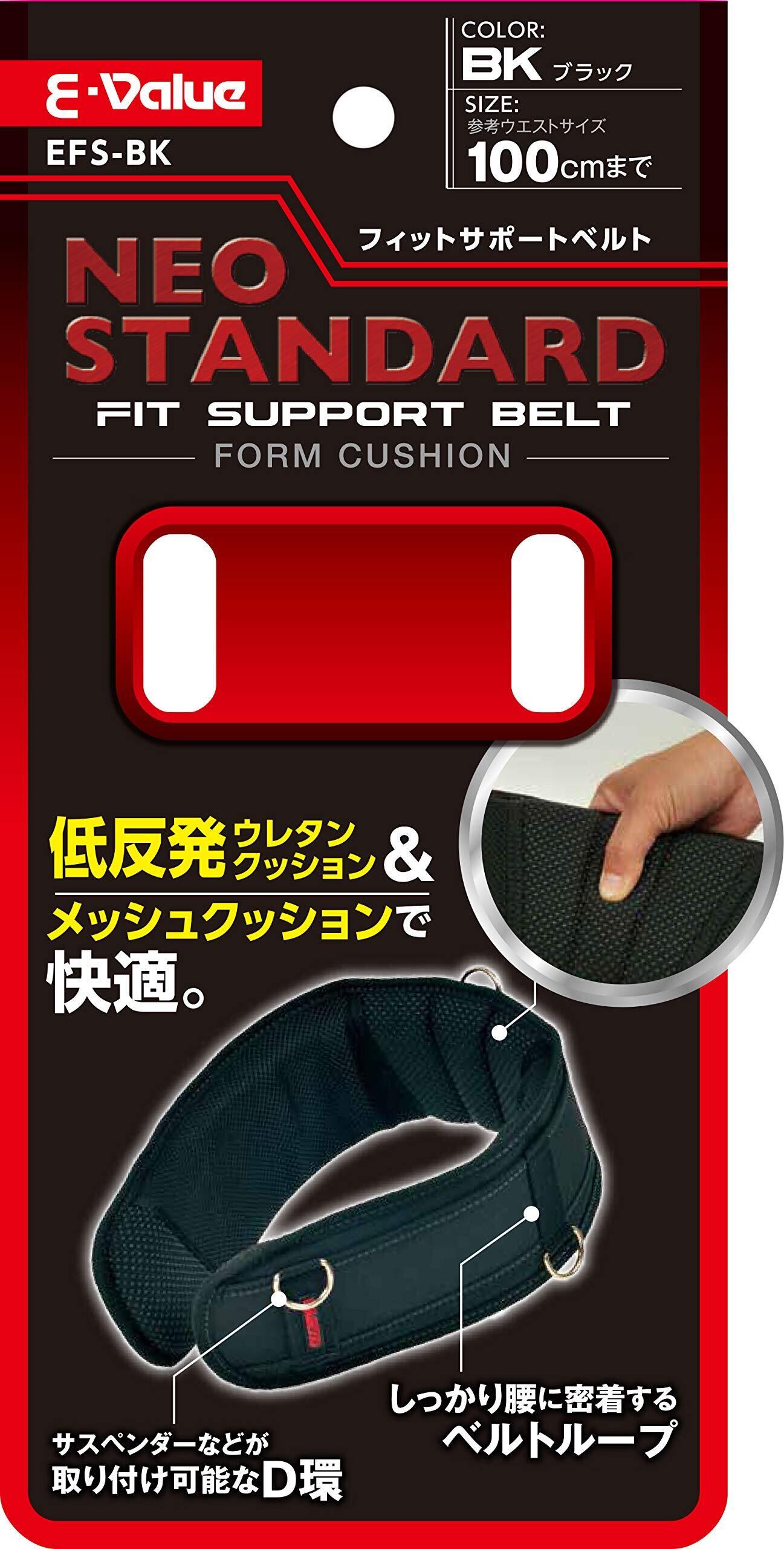 イーバリュー(E-Value) フィットサポートベルト 低反発ウレタンで腰の負担を軽減 EFS-BK 長さ800mm ブラック D環付き