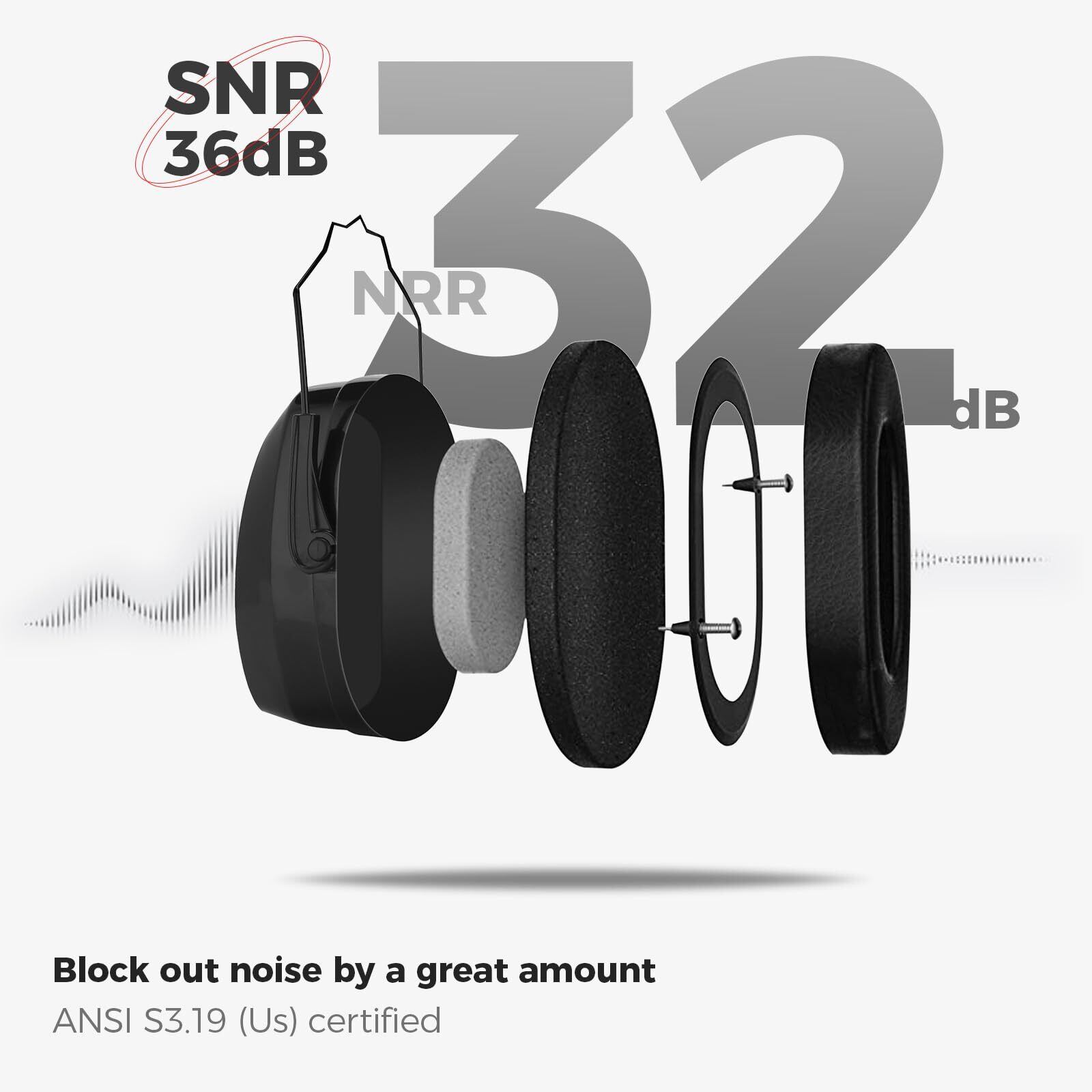 ProCase 大人用イヤーマフ:超安全性と快適性に合わせて設計された安全なデザイン。 ANSI S3.19(米国)試験スタンドで認定されたNRR 32dB のノイズ低減装置。