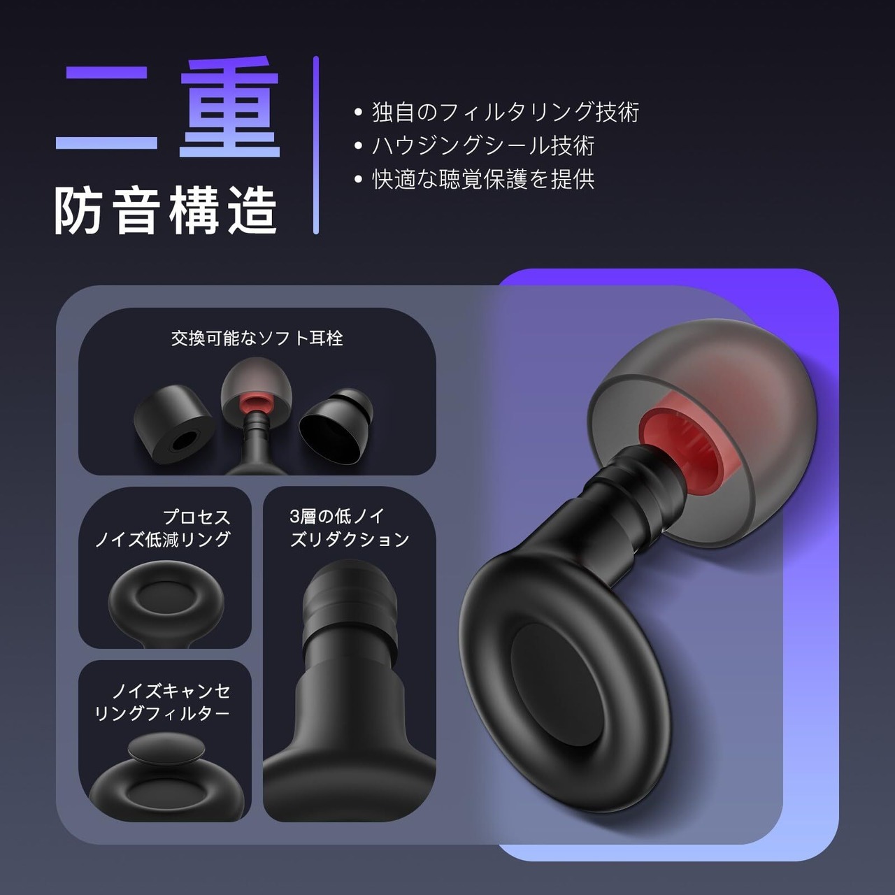 【進化版耳栓&効果的な遮音】進化版の耳栓は、二重構造によって高水準のNRR40dBのノイズ低減効果を持ち、通常のNRR35dBの耳栓と比べて卓越した遮音力を発揮します。あらゆる騒音を簡単に遮断し、長期間快適な聴覚保護を提供します。ご注意:完全遮音ではありませんが、アラーム、通話、警報などの必要な音は聞こえますので、安心して使用いただけます。