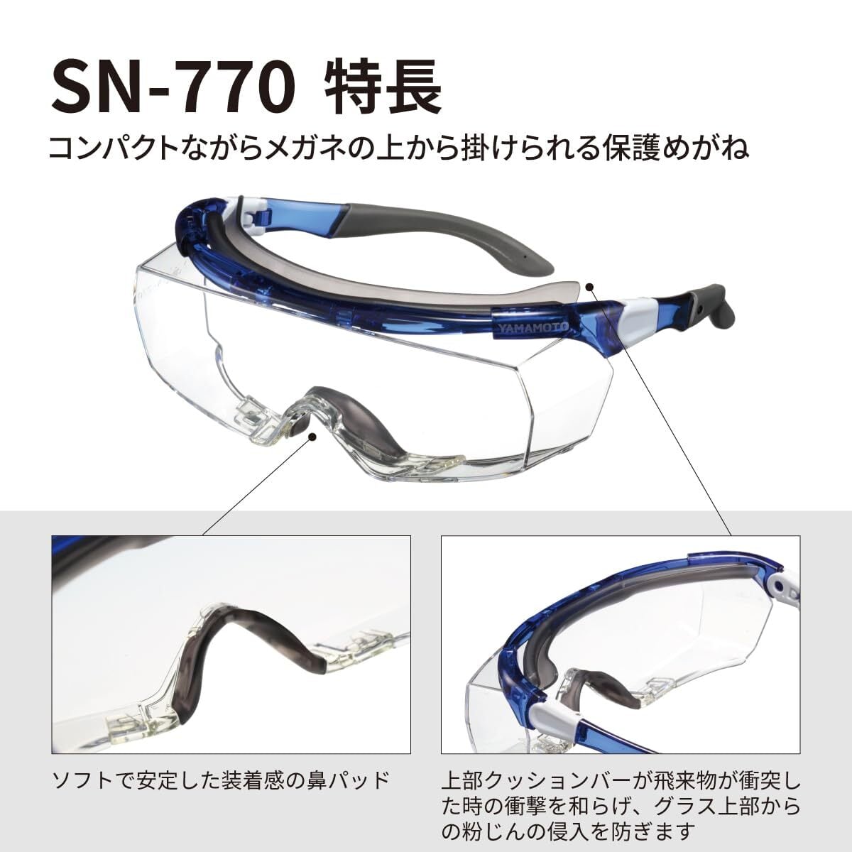 [山本光学] 保護めがね SN-770 メガネの上からかけられる キズに強い くもり止め 日本製 JIS 紫外線カット