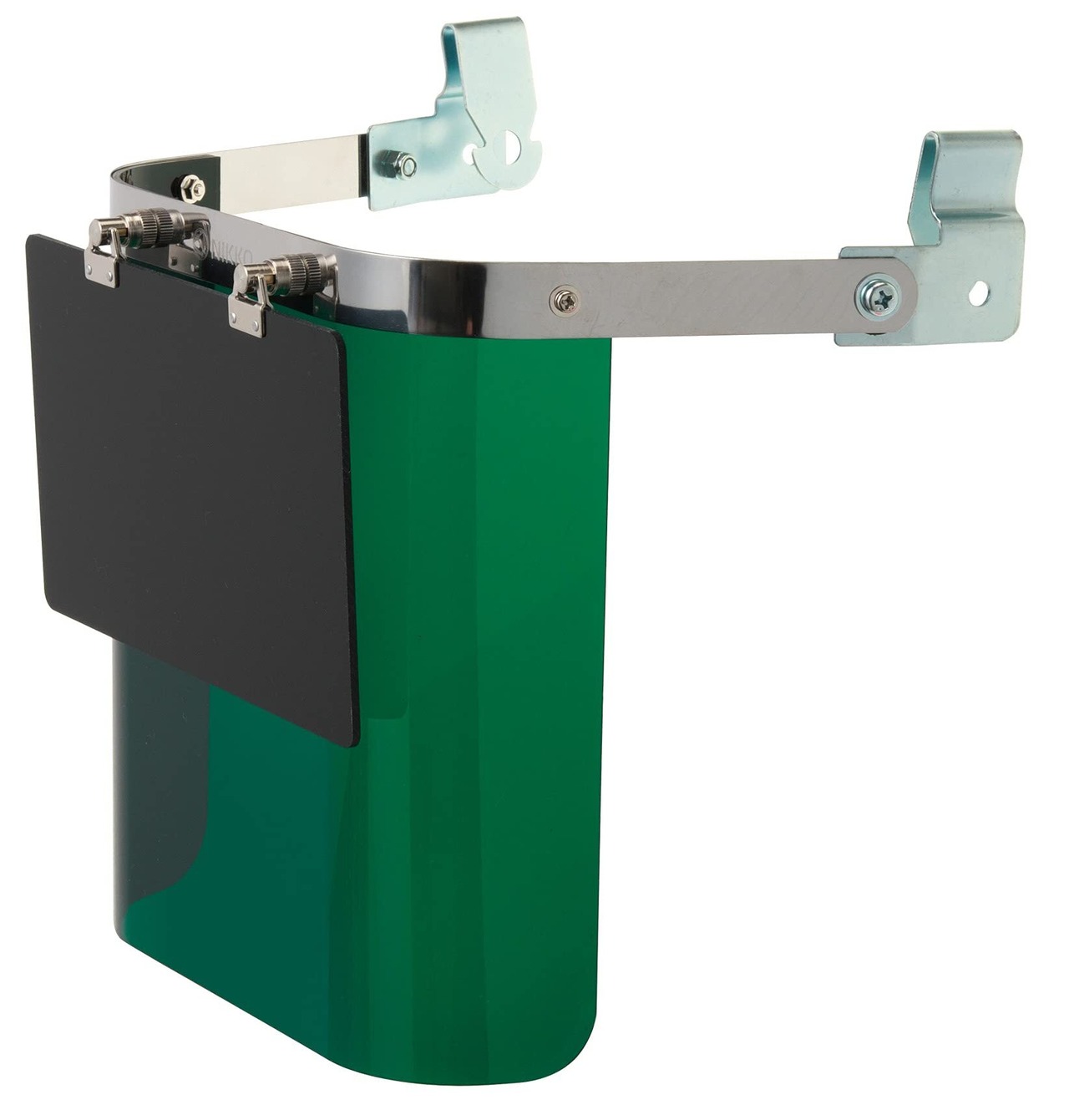金具に差し込むヘルメット取付式防災面。前プレート付。正面が平らな角型レンズ。