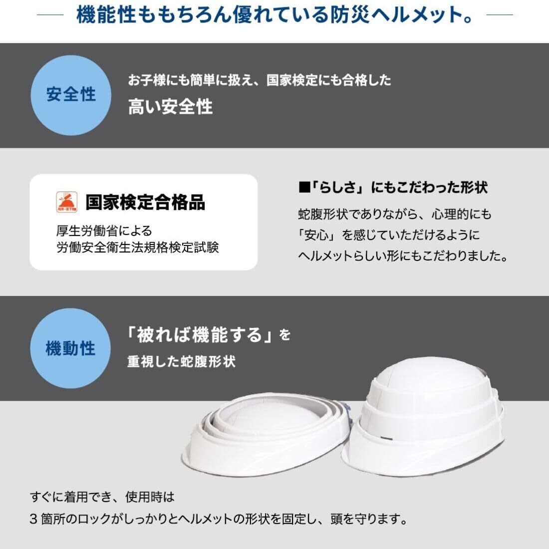 蛇腹形状でありながら、心理的にも「安心」を感じていただく様に、ヘルメットらしい形にもこだわりました。
