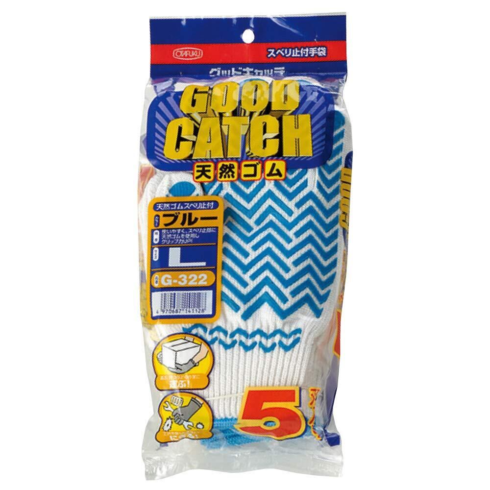 おたふく手袋(OTAFUKU GLOVE) スベリ止め軍手 グッドキャッチ [7ゲージ スベリ止め:天然ゴム] G-322 ブルー L 【5双組】