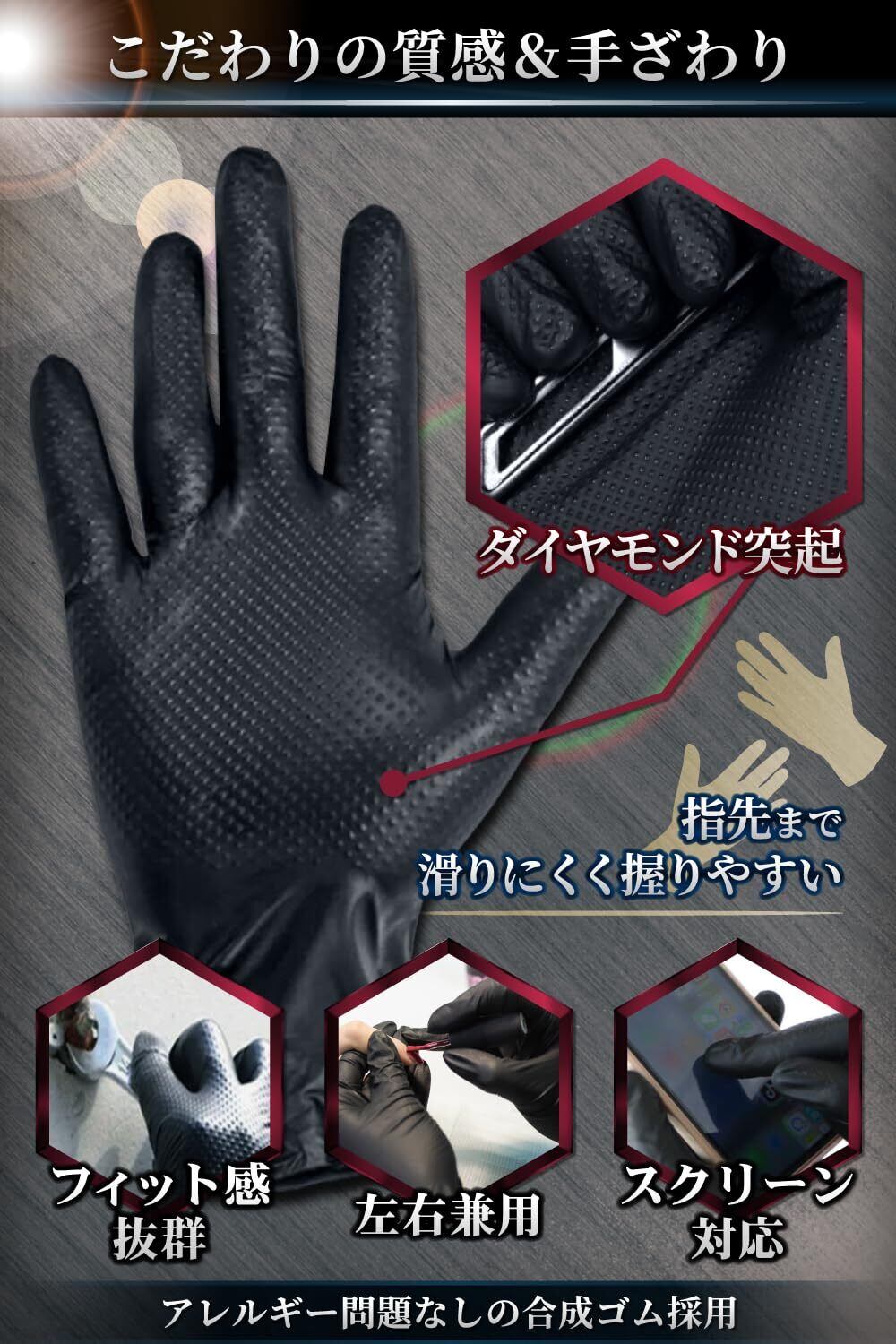 [nice job] プロ仕様 ニトリル手袋 ゴム手袋 作業用 黒 50枚 100枚 スマホ対応 強グリップ 強伸縮 耐油性 粉なし 法人注文歓迎 ガーデニング 自動車整備 バイク 自転車整備 掃除 引っ越し DIY 草抜き
