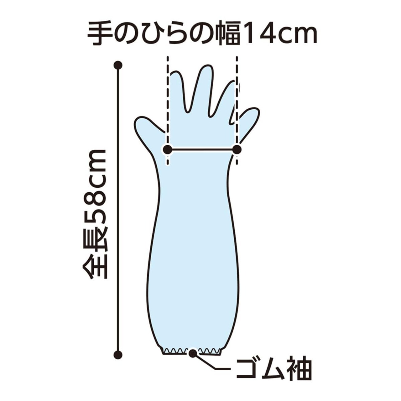 ・ゴム袖がしっかりと締まるため、飛散する水や汚物が手袋の中に入りにくくなっています。