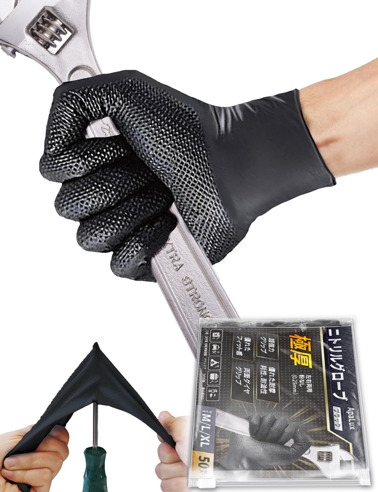 [APALUX] 純正 ニトリル手袋 厚手 100枚/50枚 【超強力グリップ】 強耐久性 ゴム手袋 作業用 工業用 使い捨て手袋 耐油性 強伸縮性 0.25mm ニトリルグローブ メカニックグローブ 園芸 機械修理 油仕事 塗装 車整備 日本企業 適格請求書発行可 大口注文歓迎 | KSショップ