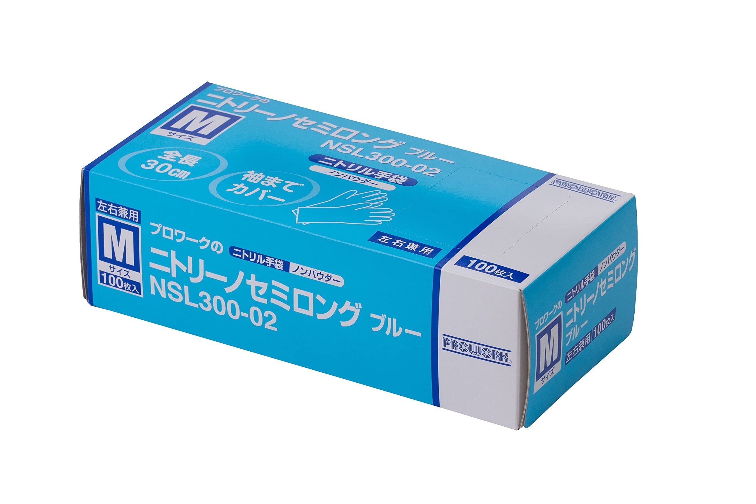中部物産貿易 PROWORK ニトリーノセミロングブルー (M) 100枚入 ニトリル手袋 ロング 食品衛生法適合 青 調理 毛染め 軽作業