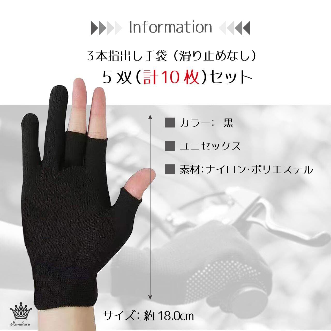 [Rimikuru] 3本指手袋 指なし軍手 作業用 滑り止め 作業用手袋 指出し 薄手 軍手 3本指 黒 指出しグローブ セット