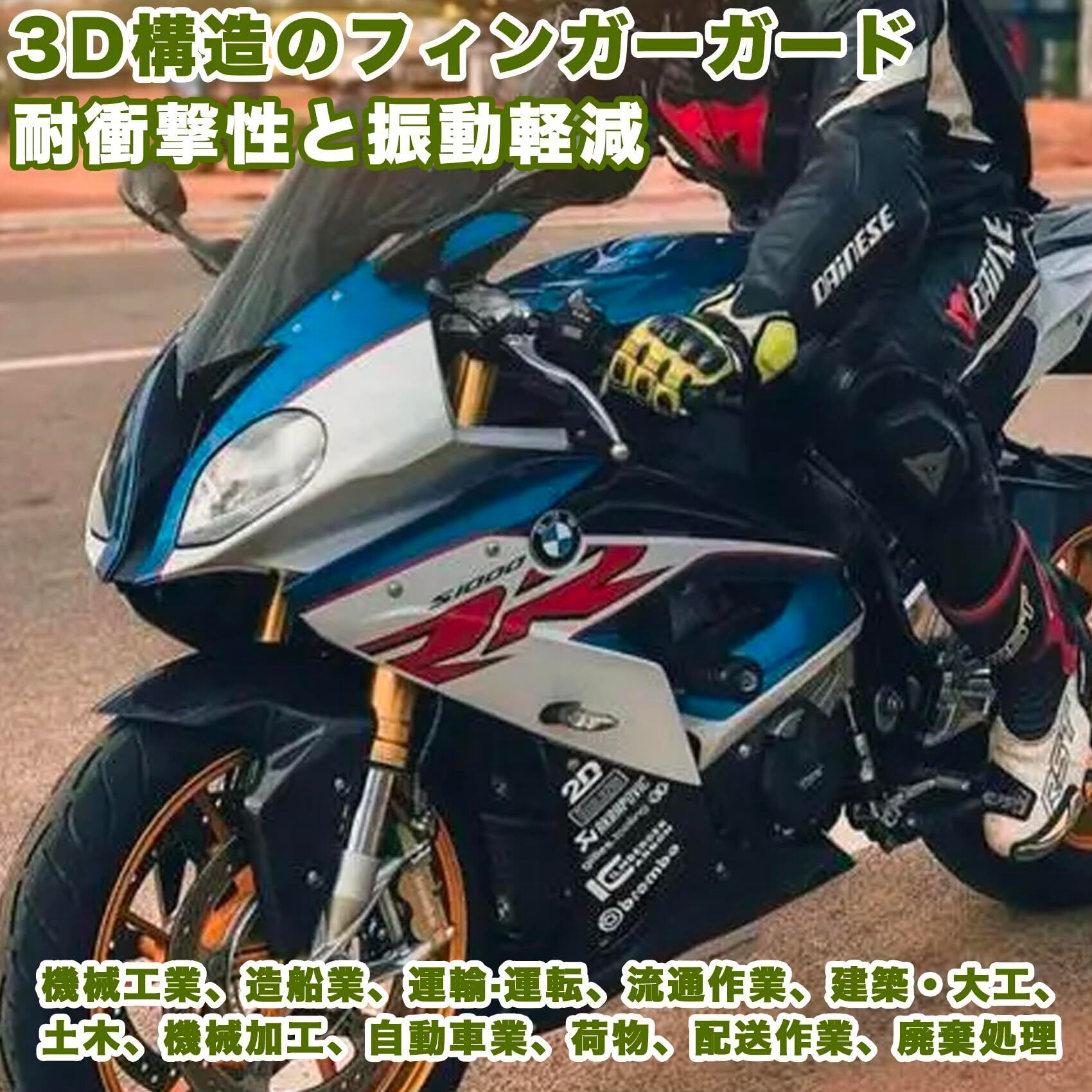 【耐衝撃性と振動軽減】手の甲に3D構造のPVC / TPRパッチを追加し、耐衝撃と振動の低減を実現します。高器用なネオプレンパッドは立体的な耐振動性を提供します。手袋内側に施されたクッションが振動を吸収し体への負担を和らげま