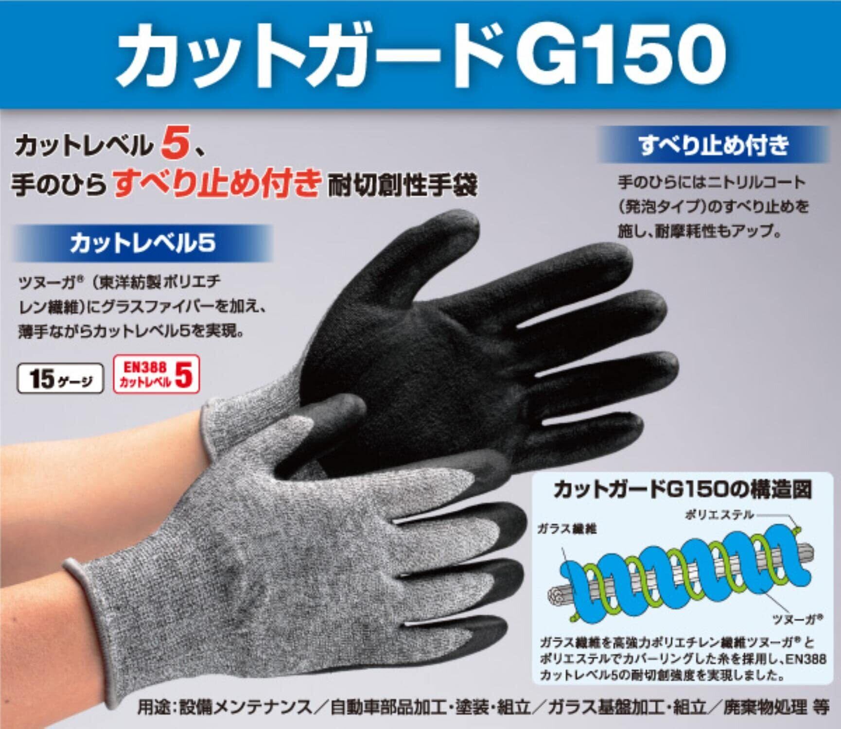 ※カットガード150は切れにくい手袋であり、決して切れない手袋ではありません。必ず使用前に安全をご確認下さい。